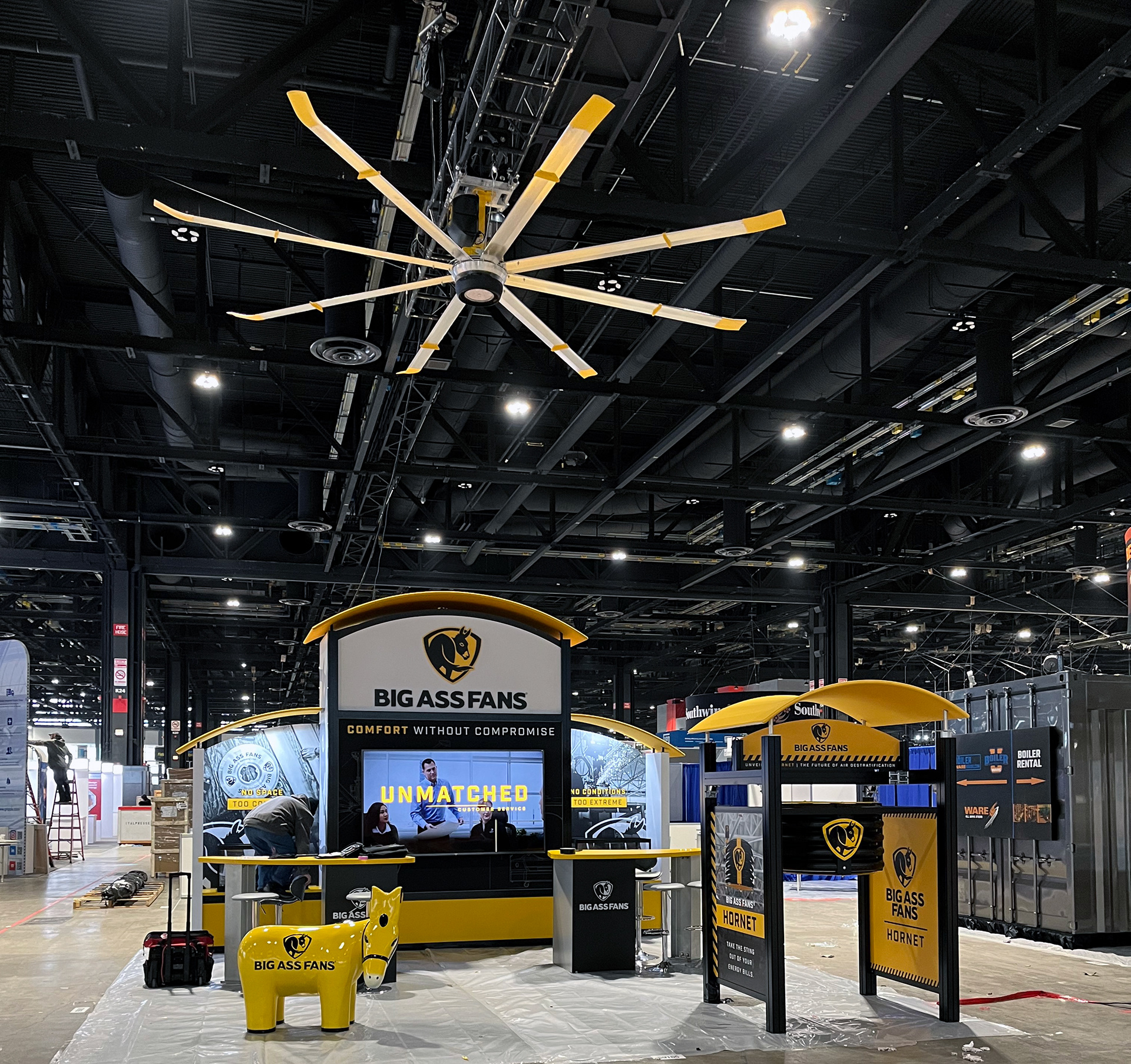 This was an updated custom Trade Show Booth for Big Ass Fans. I had to create templates for all panels and provide them to the client for artwork. I did layouts and mockups of the booth for the clients to see and approve for final graphic production.