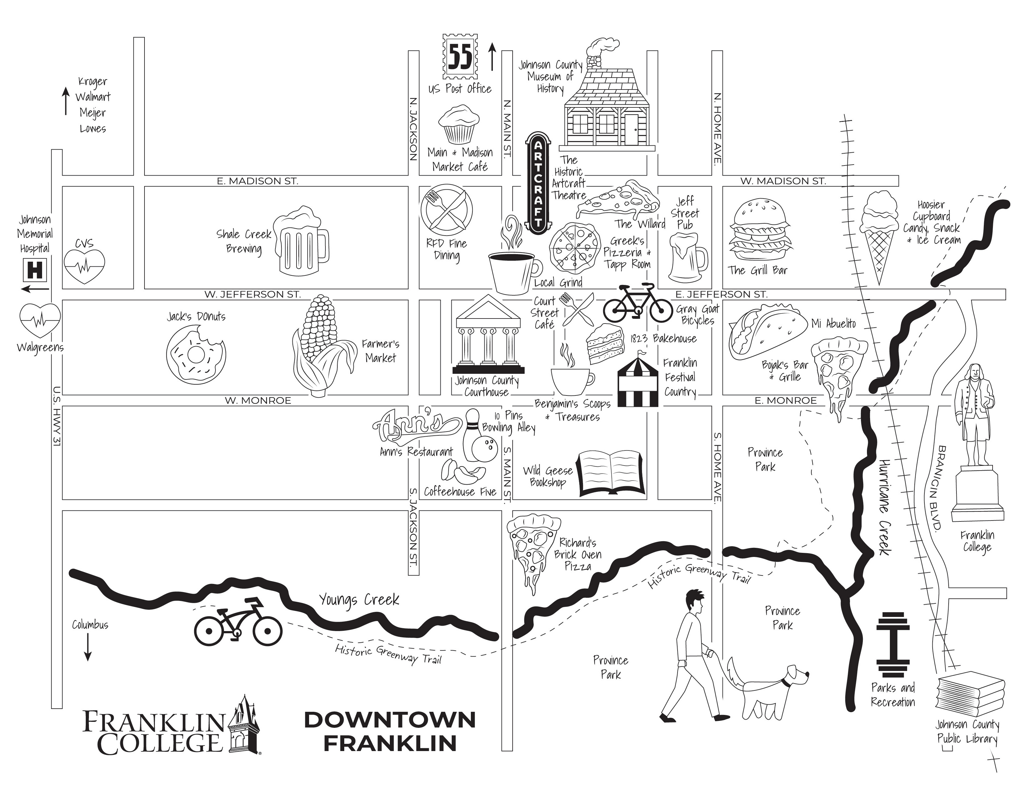 Illustrated Downtown Franklin Map