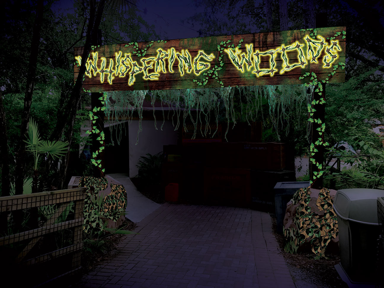 Mock Up of a 12' Wide Entry Sign into a Haunted Woods Called Whispering Woods.