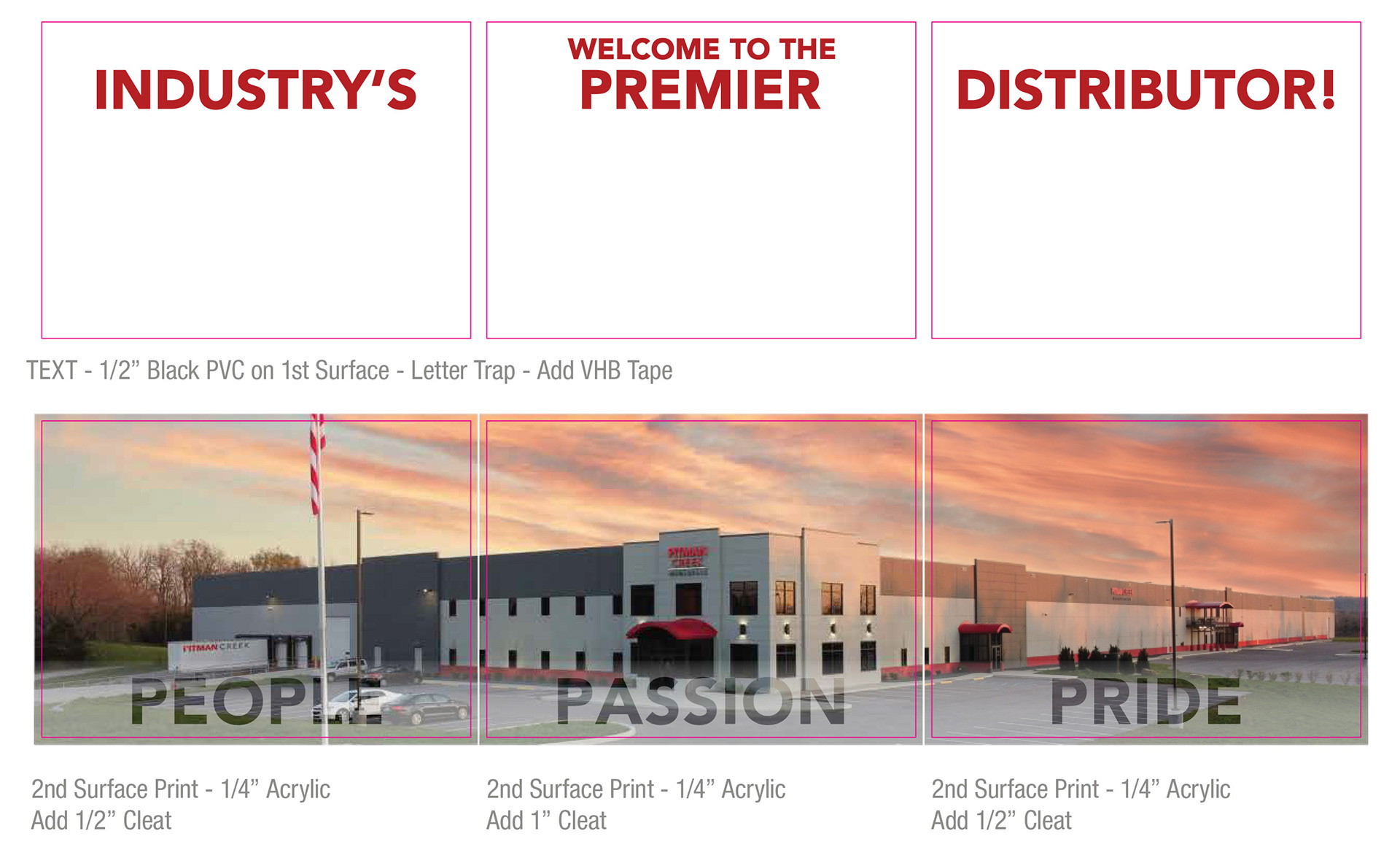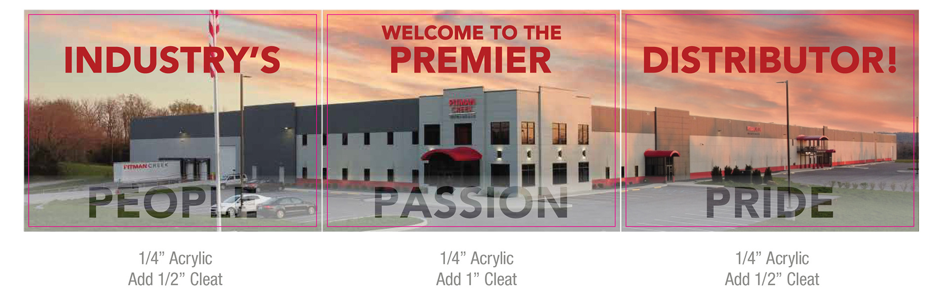 While working at Nimlok Kentucky as a Graphic Designer I created a triptych of the Pitman Creek facility to hang in their lobby.